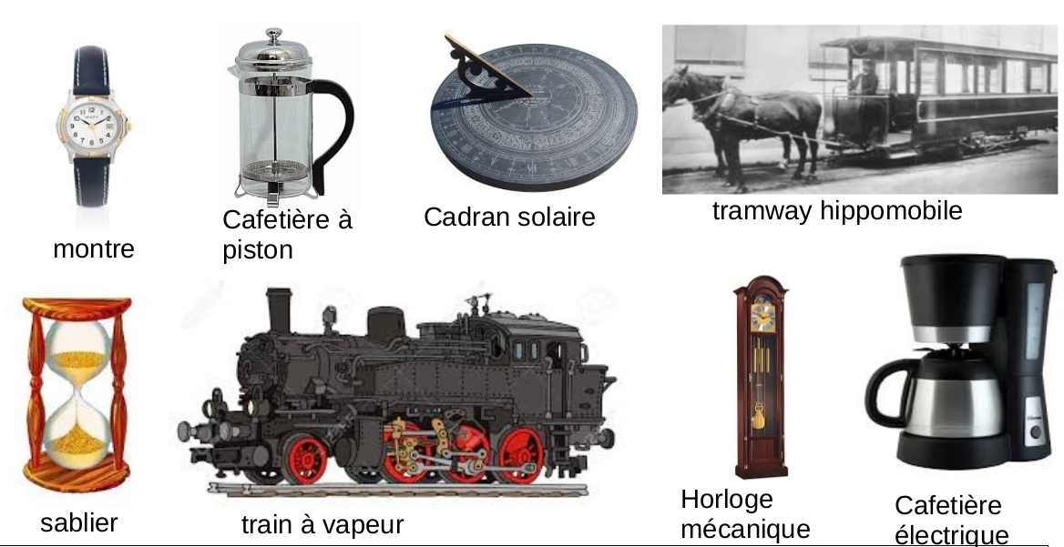 Etape 1 : au brouillon, regroupe les objets d’une même famille selon un même principe technique (manuel, mécanique et automatique) pour former des lignées