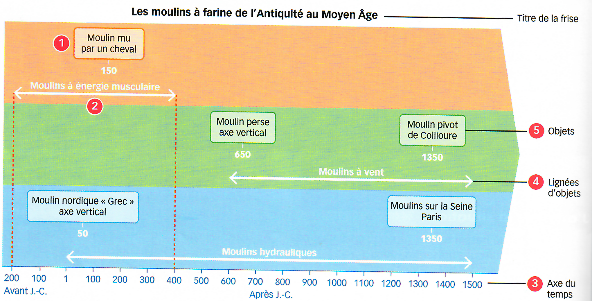 Etape 3 : trace l’axe du temps de la frise globale en respectant l’échelle
