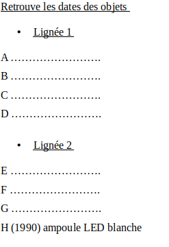 Etape 5 : reporte les objets étudiés sur la lignée correspondante en indiquant leur nom et date