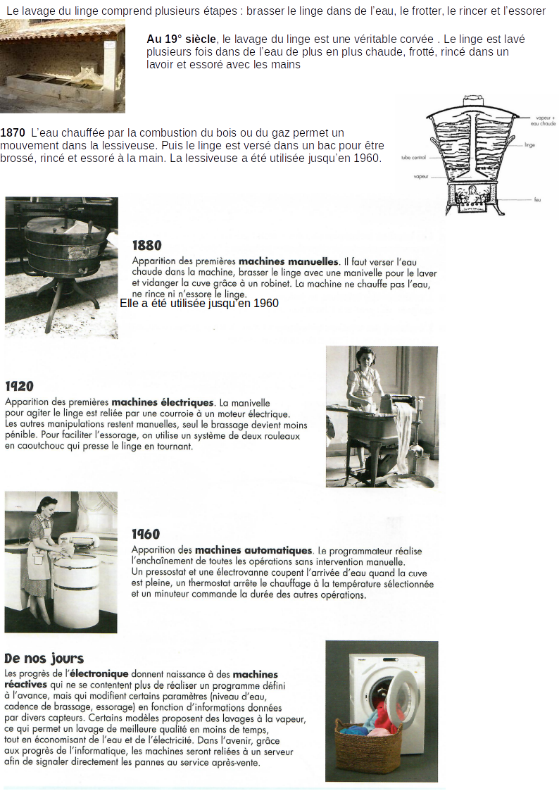 Réalise les frises chronologiques des lignées des machines à laver ainsi que la frise globale à l’aide du document suivant (tu prendras pour échelle : 1cm correspondant à 10 ans) :