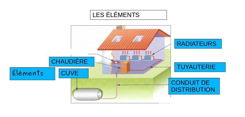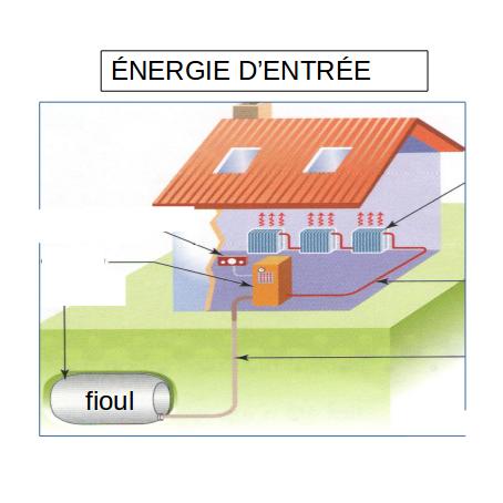Une des formes d’énergies (énergie produite) est la chaleur. On peut l’obtenir notamment grâce à un chauffage. Etudions plus particulièrement le chauffage central au fioul : quelle est l’énergie naturelle utilisée ? quelle est l’energie produite ? quels sont les éléments qui permettent de la produire et à quoi servent ils ?
