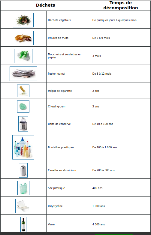 Exercice 1 : quel est le temps de destruction naturelle des déchets ?